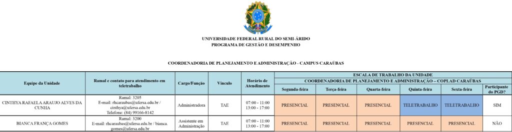 rhcaraubas@ufersa.edu.br / bianca.gomes@ufersa.edu.br
